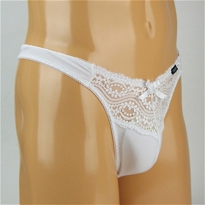 メンズ ストレッチ&レースコンビTバック (ホワイト) ホワイト